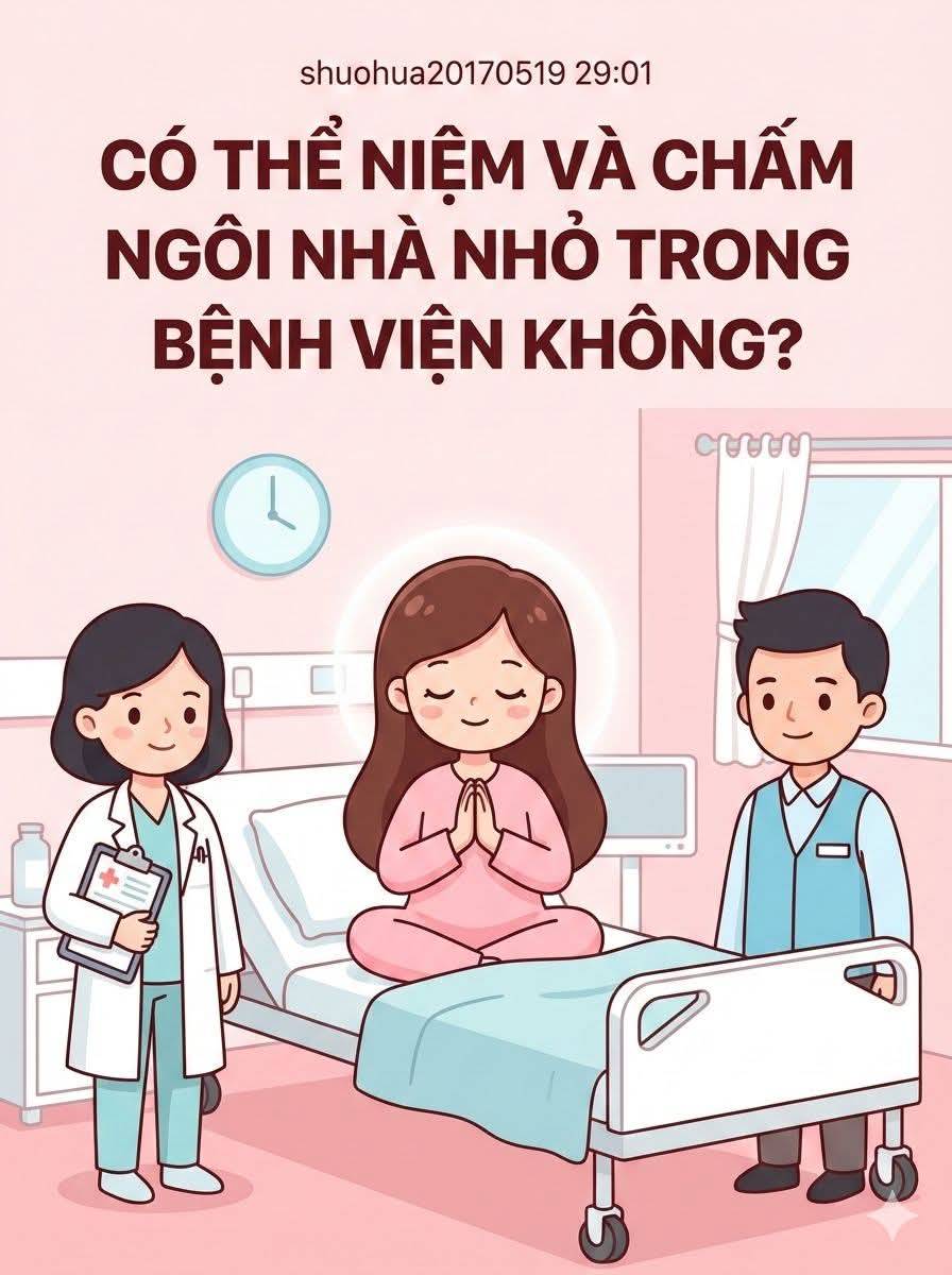 Đáp: Bệnh viện không sạch sẽ. (Ban ngày) Ban ngày chỉ có thể niệm kinh, niệm xong thì nói nhỏ với Bồ Tát một chút. Nơi này không sạch sẽ. Bồ Tát chắc cũng sẽ đồng ý thôi, nhưng nhất định phải nói với Bồ Tát.