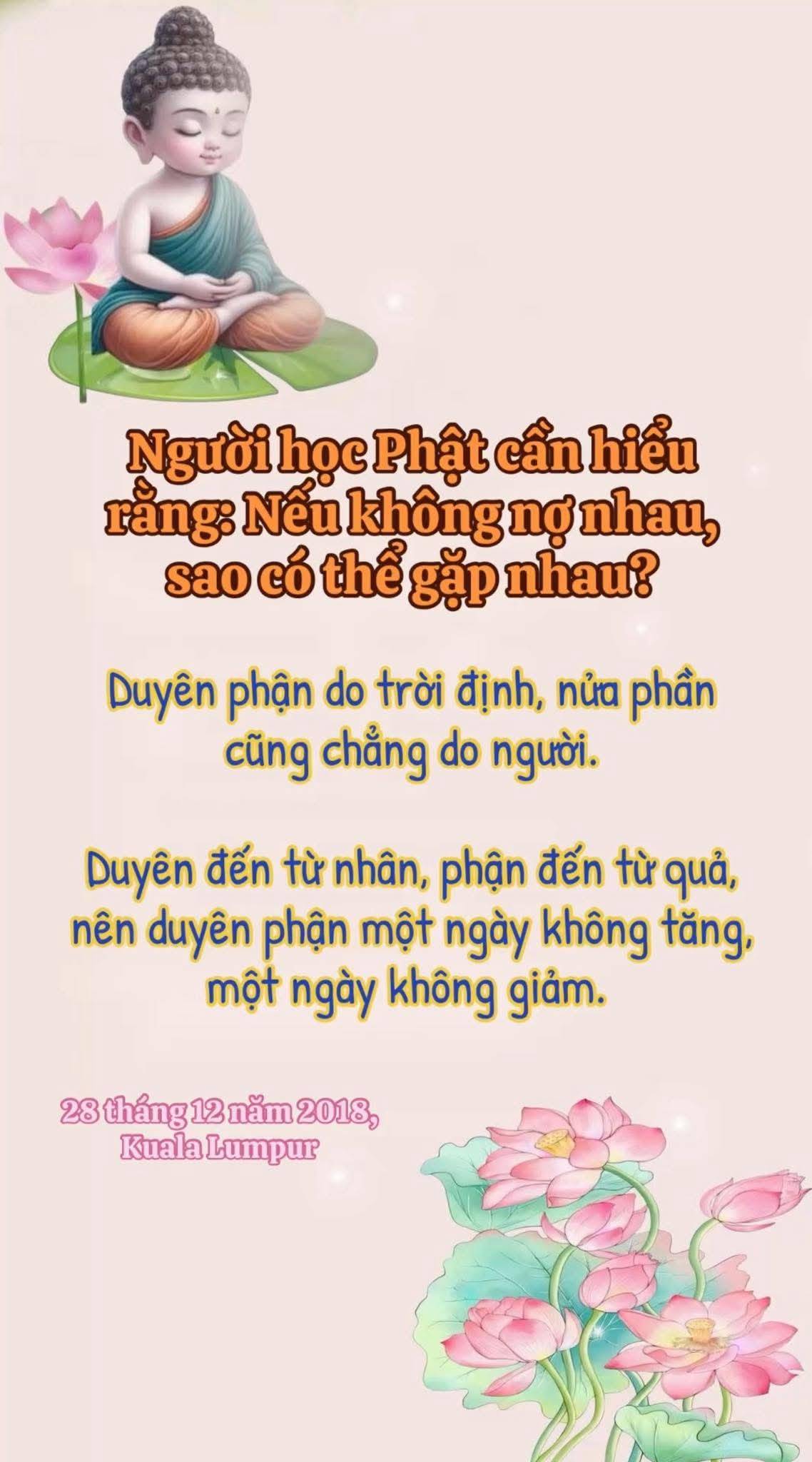 ✅️ Duyên đến từ nhân, phận đến từ quả, nên duyên phận một ngày không tăng, một ngày không giảm.