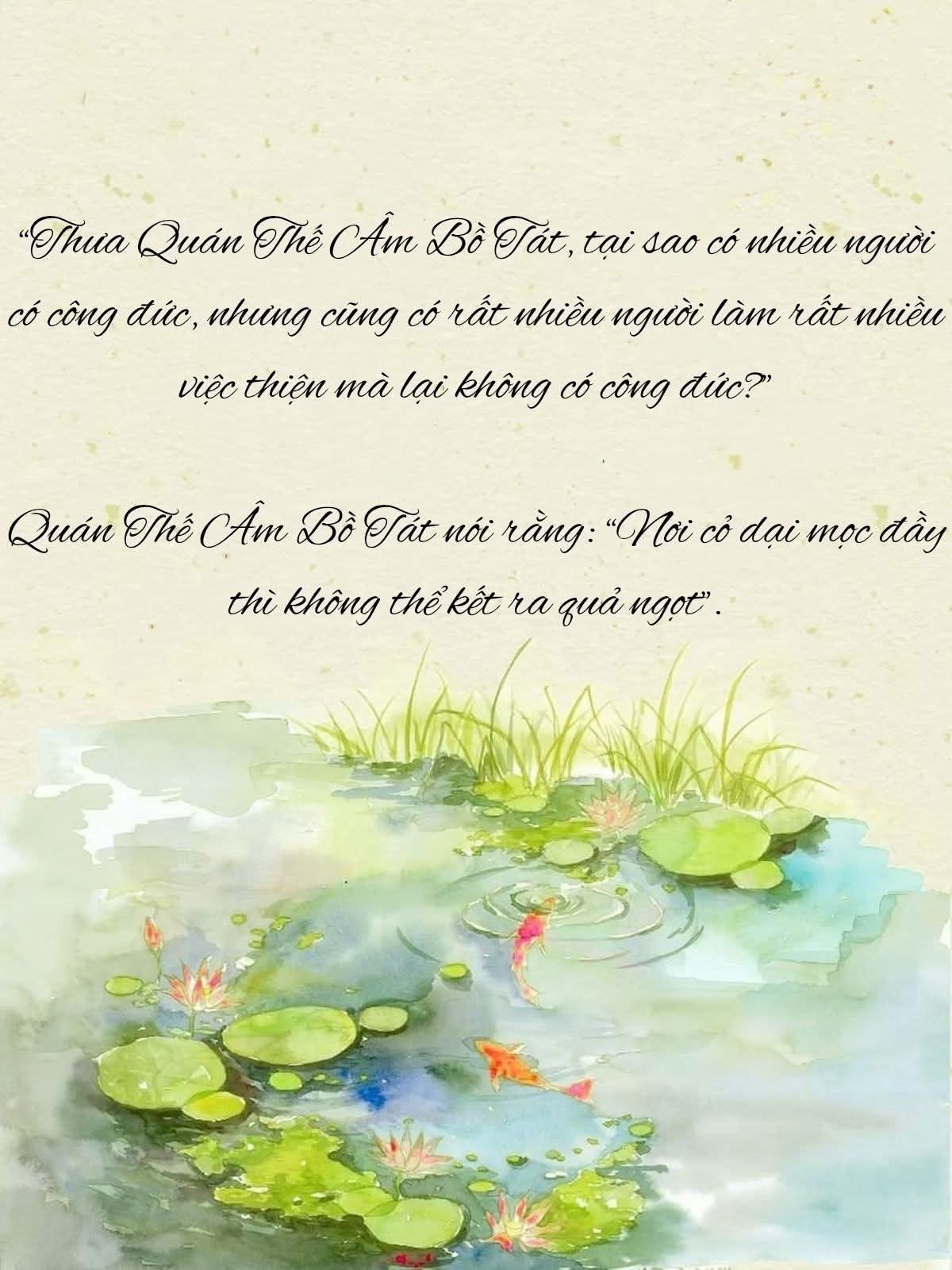 🌸 Câu hỏi thứ tư, các bạn đừng vội, lời của Bồ Tát vô cùng tuyệt vời, ta tiếp tục hỏi Quán Thế Âm Bồ Tát: “Thưa Quán Thế Âm Bồ Tát, tại sao có nhiều người có công đức, nhưng cũng có rất nhiều người làm rất nhiều việc thiện mà lại không có công đức?”