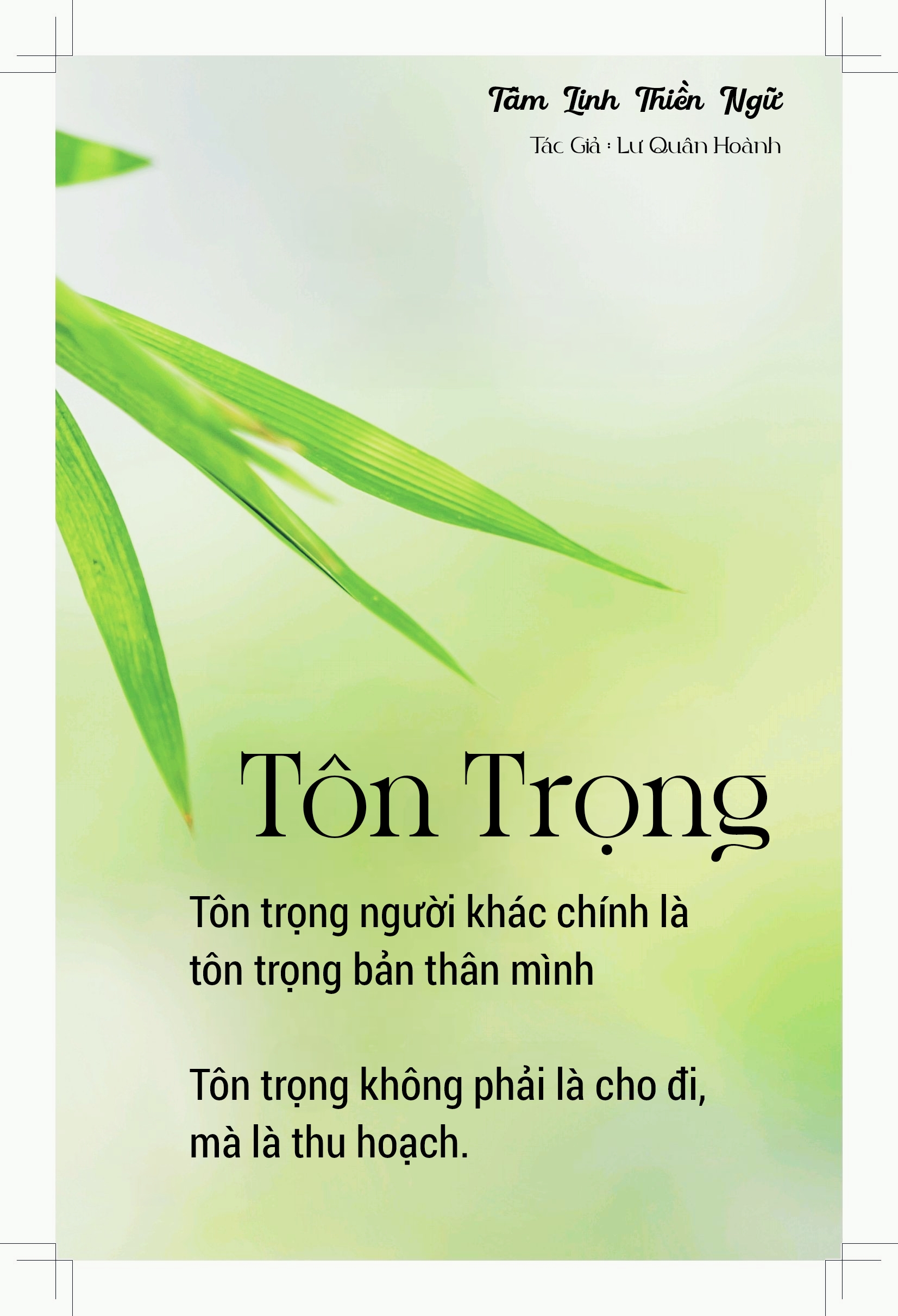 Tôn trọng người khác chính là tôn trọng bản thân mình; tôn trọng không phải là cho đi, mà là thu hoạch.
