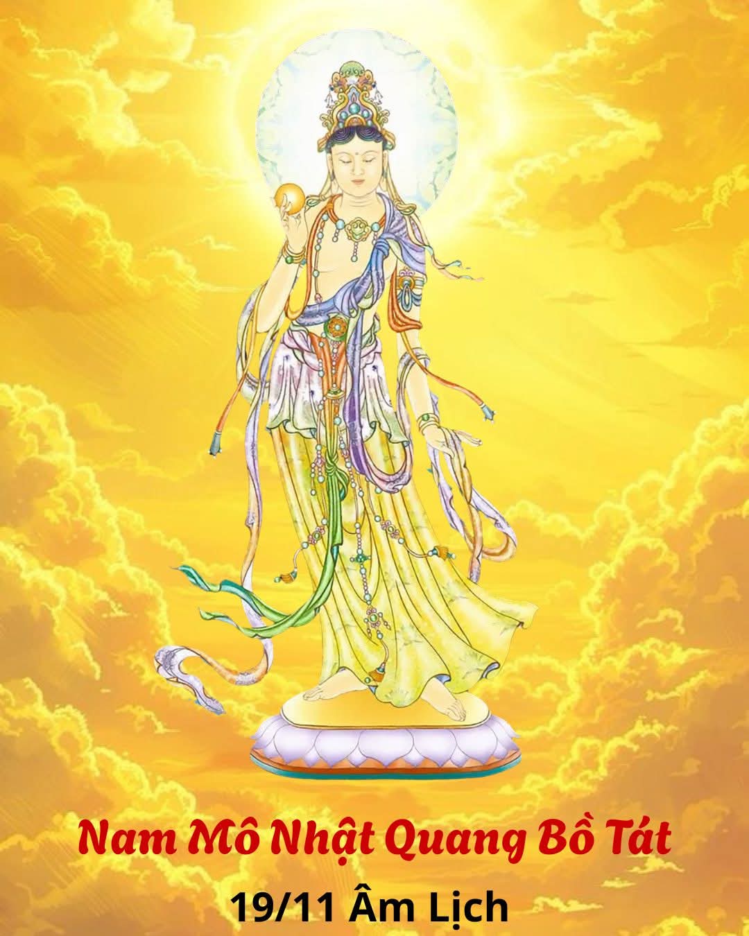 #Dược Sư Phật, bên cạnh có hai vị Bồ Tát phụ tá cho Ngài, Một bên đứng là Nhật Quang Bồ Tát, Một bên đứng là Nguyệt Quang Bồ Tát;