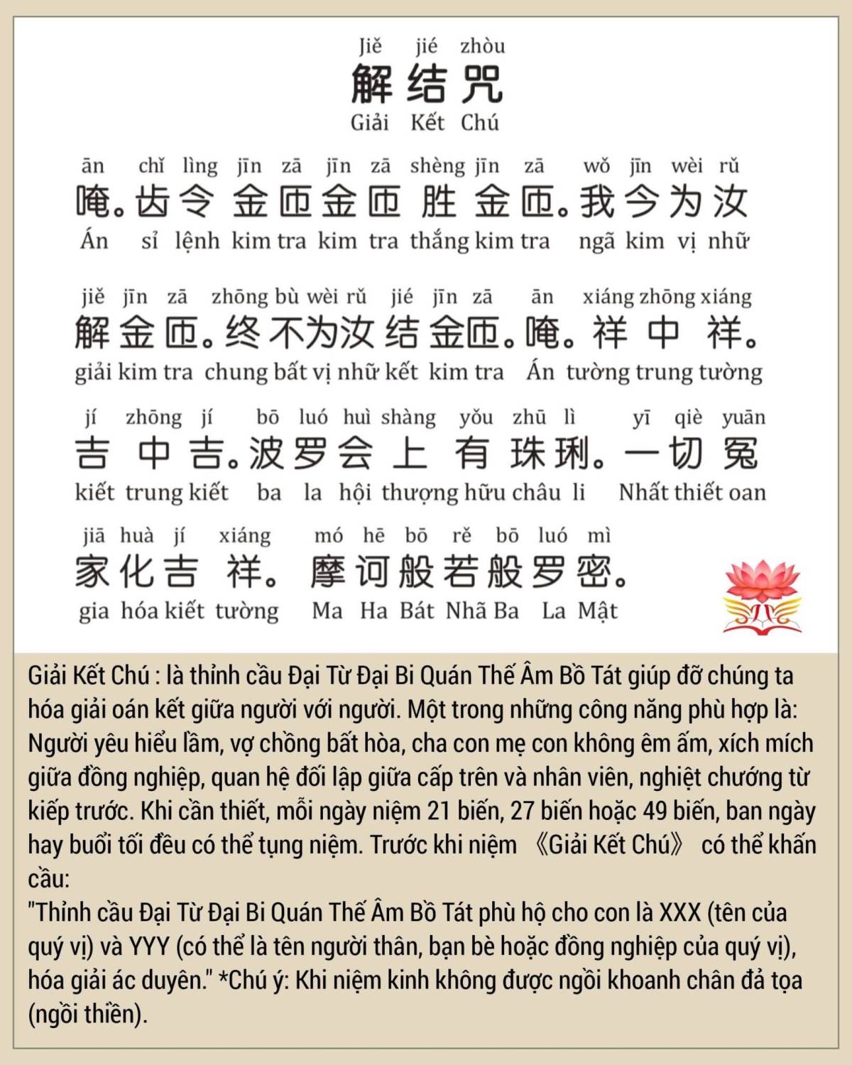 🇻🇳《Giải Kết Chú》 là thỉnh cầu Đại Từ Đại Bi Quán Thế Âm Bồ Tát giúp đỡ chúng ta hóa giải oán kết giữa người với người.