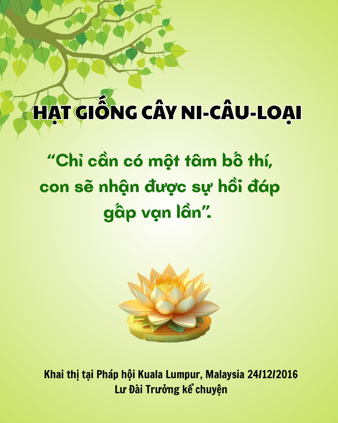 (Ghi chú: Cây Ni-câu-loại - Nyagrodha: Hay còn gọi là cây Đa Ấn Độ, thường được dùng trong kinh điển Phật giáo để ví dụ cho việc từ một nhân nhỏ có thể trổ ra quả báo to lớn.)